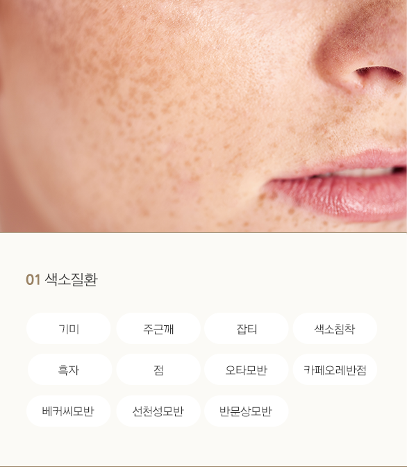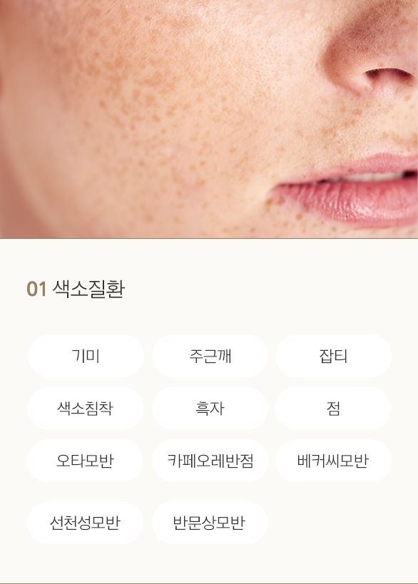 색소질환은 단순히 색소 병변만 제거하는 것이 아니라 그것을 악화시키는 요인과 기저질환을 파악하는 것이 중요합니다.