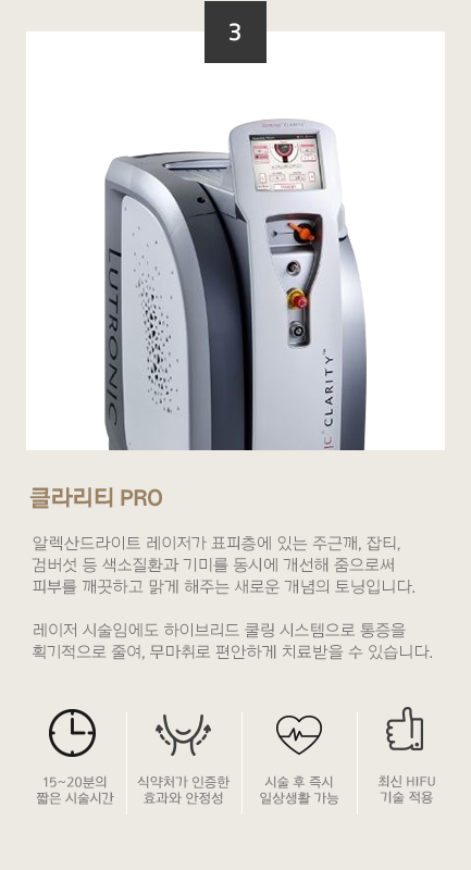 클라리티 Pro, 레블라이트, 포텐자, Co2, Erbium 레이저 등 프리미엄 레이저 다수 보유
